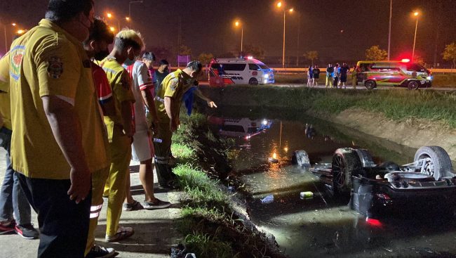 หนุ่มใหญ่วัย 60 ปีขับรถยนต์เสียหลักพุ่งตกคลองระบายน้ำข้างถนนดับสยอง คาดอาจวูบหรือมีรถคันอื่นเฉี่ยวชน