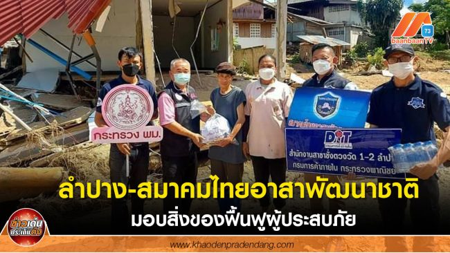 ลำปาง-สมาคมไทยอาสาพัฒนาชาติ ร่วมหลายหน่วยงาน มอบสิ่งของฟื้นฟูผู้ประสบภัยหลังโดน “หมาอ๊อน” ถล่มหนัก