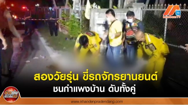 สองวัยรุ่น ขี่รถจักรยานยนต์ ซ้อนกันมาแล้ว เสียหลักชนกำแพงบ้านข้างทาง เสียชีวิตทั้งคู่
