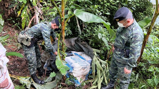 จึงจัดกำลังพลร่วมจำนวน 3 ชุดปฏิบัติการทำการลาดตระเวณพิสูจน์ทราบ บริเวณ ป่ากล้วยข้างสถานีควบคุมไฟป่าดอยตุง ต.ห้วยไคร้ อ.แม่สาย จ.เชียงราย ได้ตรวจพบร่องรอยแผ่วถางหญ้ารกทึบ เข้าไปข้างในประมาณ 50 เมตร จึงเข้าทำการตรวจสอบ พบเป้ดัดแปลงทรงสี่เหลี่ยม มีสายสะพาย จำนวน 10 เป้ คาดว่าภายในบรรจุยาเสพติด คาดว่าจะเป็นยาบ้าจำนวนประมาณ 2 ล้านเม็ด โดยได้จัดกำลังพลเข้าปิดล้อมพื้นที่ดังกล่าวเพื่อขยายผลตรวจสอบต่อไป