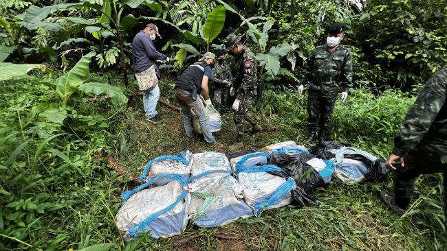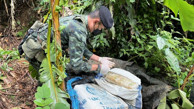 เวลา 17.30 น. วันที่ 2 ก.ย.65 พันเอก รุ่งโรจน์ เปล่งสันเที๊ยะ รองผู้บังคับ กองบังคับการ ควบคุมสกัดกั้นและปราบปรามยาเสพติด กองกำลังผาเมือง ได้ตรวจสอบยาบ้าประมาณ 2 ล้านเม็ด ที่ บริเวณ ป่ากล้วยข้างสถานีควบคุมไฟป่าดอยตุง ต.ห้วยไคร้ อ.แม่สาย จ.เชียงราย หลังจากเมื่อเวลาประมาณ เวลา 16.30 น.ที่ผ่านมา กำลังทหารกองร้อยทหารม้าที่ 2 บก.ควบคุมที่ 1 หน่วยเฉพาะกิจกรมทหารม้าที่ 3 ภายใต้การควบคุมของ พันเอกสุทธิ์เขต ศรีนิลทิน ผู้บังคับหน่วยเฉพาะกิจกรมทหารม้าที่ 3 กองกำลังผาเมือง ร่วมกับ กองบังคับการควบคุมสกัดกั้นและปราบปรามยาเสพติด กองกำลังผาเมือง ได้รับแจ้งจาก ชุดปฏิบัติการการข่าว ว่าจะมีการลักลอบลำเลียงยาเสพติดเข้ามาจากชายแดนประเทศเพื่อนบ้านด้าน จ.เชียงราย