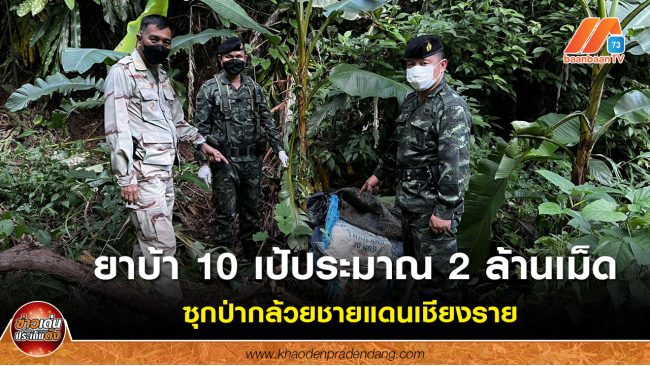 จึงจัดกำลังพลร่วมจำนวน 3 ชุดปฏิบัติการทำการลาดตระเวณพิสูจน์ทราบ บริเวณ ป่ากล้วยข้างสถานีควบคุมไฟป่าดอยตุง ต.ห้วยไคร้ อ.แม่สาย จ.เชียงราย ได้ตรวจพบร่องรอยแผ่วถางหญ้ารกทึบ เข้าไปข้างในประมาณ 50 เมตร จึงเข้าทำการตรวจสอบ พบเป้ดัดแปลงทรงสี่เหลี่ยม มีสายสะพาย จำนวน 10 เป้ คาดว่าภายในบรรจุยาเสพติด คาดว่าจะเป็นยาบ้าจำนวนประมาณ 2 ล้านเม็ด โดยได้จัดกำลังพลเข้าปิดล้อมพื้นที่ดังกล่าวเพื่อขยายผลตรวจสอบต่อไป
