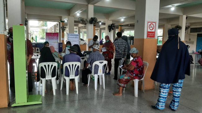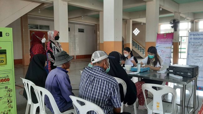 วันที่ 8ก.ย.ที่มัสยิดสุเหร่าเขาขยาย ม.5 ต.บ่อวิน อ.ศรีราชา จ.ชลบุรีฝ่ายปกครองท้องที่ และผู้นำท้องถิ่น ลงพื้นที่พร้อมด้วยเจ้าหน้าที่ธนาคารออมสิน เพื่ออำนวยความสะดวก ผู้พิการ, ผู้ป่วยติดเตียง ที่ไม่สามารถเดินทางมายังจุดบริการรับลงทะเบียน และไม่สามารถมอบอำนาจได้ เพื่อให้บริการลงทะเบียนสวัสดิการแห่งรัฐ 2565 พร้อมสอบถามปัญหาข้อขัดข้อง ณ จุดบริการรับลงทะเบียนสวัสดิการแห่งรัฐ ที่กระจายตัว ทุกแห่งในพื้นที่ และพบว่าหนึ่งในปัญหาสำคัญ ที่ทำให้พี่น้องประชาชนบางส่วนไม่สามารถลงทะเบียนได้คือ กลุ่มเปราะบาง โดยเฉพาะกลุ่มผู้พิการ และผู้ป่วยติดเตียง ที่อาศัยอยู่ตามลำพัง หรือไม่สามารถมอบอำนาจให้บุตรหลาน หรือญาติมาลงทะเบียนสวัสดิการแห่งรัฐ ณ จุดบริการลงทะเบียนได้