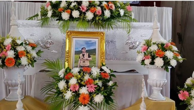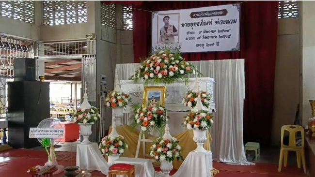 ผู้สื่อข่าวรายงานบรรยากาศงานศพนายยุทธภัณฑ์ พ่วงนวม อายุ 27 ปี ที่ศาลาธรรมสังเวช วัดคุ้งยางใหญ่ หมู่3 ต.บ้านสวน อ.เมือง จ.สุโขทัย บรรยากาศเป็นไปอย่างเงียบเหงามีบรรดาญาติๆคุณแม่และพี่ชายคนโตของผู้เสียชีวิตกำลังนั่งพูดคุยและเตรียมงานต้อนรับแขกในคืนวันนี้ ซึ่งผู้สื่อข่าวได้พูดคุยกลับนางศรีแพร อิ่มขาว อายุ 51 ปี คุณแม่ผู้เสียชีวิตกล่าวว่า