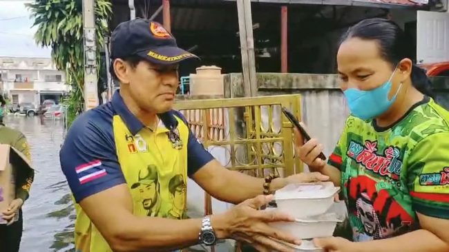 เพื่อเข้าแจกจ่ายถุงยังชีพและ ข้าวกล่องให้กับผู้ประสบอุทกภัยในชุมชนเกือบ 300 ครัวเรือน โดยเป็นการเดินเท้าลุยน้ำท่วมขังสูง กว่า 50 เซนติเมตร ในบางจุดน้ำสูงเกือบ 80 เซนติเมตร เพื่อเข้าให้กำลังใจผู้ประสบภัย ซึ่งส่วนใหญ่ยังคงอาศัยอยู่ที่ชั้นสองของบ้านพัก เนื่องจากน้ำเข้าท่วมที่ชั้นแรกของตัวบ้าน ท่ามกลางรอยยิ้มความดีใจของชาวบ้านในพื้นที่เป็นอย่างมาก