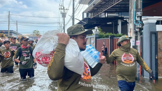 จึงนำข้าวสารอาหารแห้งและน้ำดื่มเข้ามามอบให้ เบื้องต้น นอกจากนั้นยังจัดซื้อขนมสำหรับเด็ก ๆ มามอบให้กับเด็ก ๆ ได้รับประทานอีกด้วย ส่วนประเด็นที่ยังหน้าเป็นห่วงสำหรับชาวบ้านในพื้นที่หลังจากที่เข้ามาช่วยเหลือ คงเป็นเรื่องของโรคที่จะมากับน้ำ เช่น โรคน้ำกัดเท้า หากระดับน้ำยังทรงตัวและท่วมอีกหลายวัน แต่ก็ทราบว่าหน่วยงานที่เกี่ยวข้องเร่งระบายน้ำไปได้ค่อนข้างมากแล้ว จึงคาดว่าจะใช้เวลาอีกไม่นานก็จะกลับสู่ภาวะปกติ