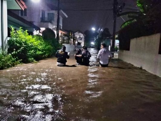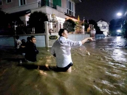 พร้อมคณะทำงาน ได้ลงพื้นที่เพื่อช่วยเหลือผู้ประสบภัยน้ำท่วม ในซอยสุดสาคร ซอยบ่อก็อก ถนนสาย 9 กิโล ในพื้นที่ตำบลสุรศักดิ์ อำเภอศรีราชา ที่ถูกน้ำป่าไหลหลากลงมาเกิดน้ำท่วมในบ้านปริมาณสูง ให้ไปอยู่ในบริเวณที่ปลอดภัย โดยมีเจ้าหน้าที่จากหน่วยงานต่าง ๆ ทั้ง เทศบาลนครเจ้าพระยาสุรศักดิ์ เทศบาลเมืองศรีราชา เจ้าหน้าที่ฝ่ายปกครองอำเภอศรีราชา และเจ้าหน้าที่กู้ภัยสว่างประทีปศรีราชา เข้าช่วยเหลือตามพื้นที่ต่าง ๆ ที่ได้รับความเดือดร้อนจากการถูกน้ำในครั้งนี้ด้วย