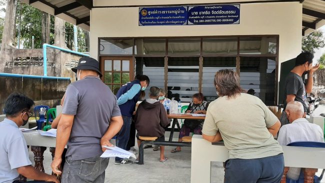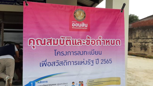วันที่ 13 ก.ย. ที่ทำการผู้ใหญ่บ้านม.4 ต.บ่อวิน อ.ศรีราชา จ.ชลบุรีโดยนายชาคริต จิตรัตธรรม ผู้ใหญ่บ้าน ม.4 พร้อมผู้ช่วยและเจ้าหน้าที่ฝ่ายปกครองท้องที่ และผู้นำท้องถิ่น ลงพื้นที่พร้อมด้วยเจ้าหน้าที่ธนาคารออมสิน เพื่ออำนวยความสะดวก ผู้พิการ, ผู้ป่วยติดเตียง ที่ไม่สามารถเดินทางมายังจุดบริการรับลงทะเบียน และไม่สามารถมอบอำนาจได้ เพื่อให้บริการลงทะเบียนสวัสดิการแห่งรัฐ 2565   พร้อมสอบถามปัญหาข้อขัดข้อง ณ จุดบริการรับลงทะเบียนสวัสดิการแห่งรัฐ ที่กระจายตัว ทุกแห่งในพื้นที่ และพบว่าหนึ่งในปัญหาสำคัญ ที่ทำให้พี่น้องประชาชนบางส่วนไม่สามารถลงทะเบียนได้คือ กลุ่มเปราะบาง โดยเฉพาะกลุ่มผู้พิการ และผู้ป่วยติดเตียง ที่อาศัยอยู่ตามลำพัง หรือไม่สามารถมอบอำนาจให้บุตรหลาน หรือญาติมาลงทะเบียนสวัสดิการแห่งรัฐ ณ จุดบริการลงทะเบียนได้