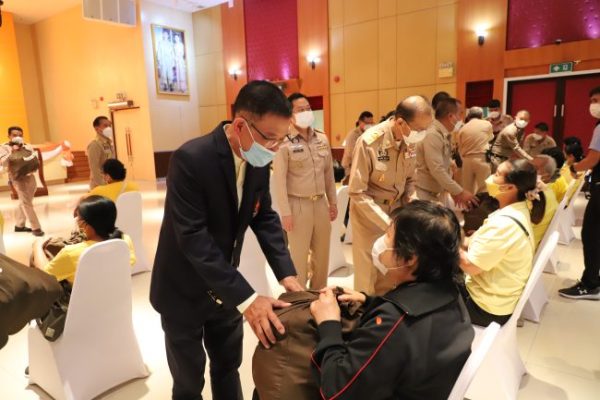 วันนี้ 16 กันยายน 2565 เวลา 09.00 น. ที่ อาคารหอประชุม 100 ปี เมืองธัญบุรี เทศบาลนครรังสิต อำเภอธัญบุรี จังหวัดปทุมธานี ศาสตราจารย์ ดร.สมเด็จพระเจ้าน้องนางเธอ เจ้าฟ้าจุฬาภรณวลัยลักษณ์ อัครราชกุมารี กรมพระศรีสวางควัฒน วรขัตติยราชนารี โปรดให้พลอากาศตรี นายแพทย์สันติ ศรีเสริมโภค รองเลขาธิการราชวิทยาลัยจุฬาภรณ์ เชิญถุงยังชีพพระราชทานมอบแก่ประชาชนที่ประสบอุทกภัยในพื้นที่อำเภอธัญบุรี จังหวัดปทุมธานี โดยมี นายณรงค์ศักดิ์ โอสถธนากร ผู้ว่าราชการจังหวัดปทุมธานี นางสาวกันตรัตน์ เริ่มสูงเนิน นายอำเภอธัญบุรี ร้อยตำรวจเอก ดร.ตรีลุพธ์ ธูปกระจ่าง นายกเทศมนตรีนครรังสิต และประชาชนชาวจังหวัดปทุมธานี เข้าร่วมพิธี