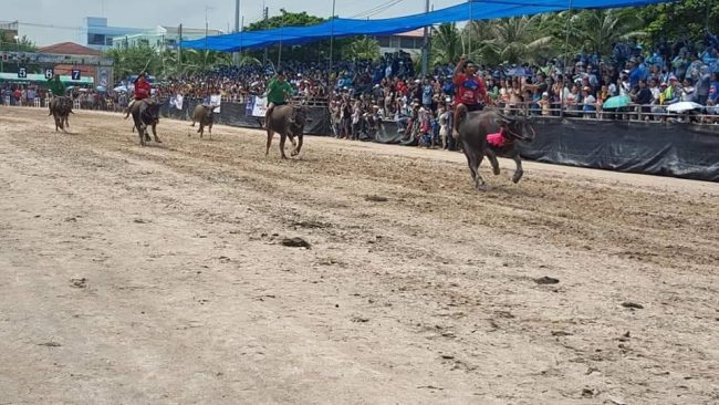 ซึ่งจะมีการแห่ริ้วขบวนเกวียนกัณฑ์ 13 กัณฑ์ตามทศชาติชาดก ขบวนคำขวัญของจังหวัดชลบุรี “ทะเลงาม ข้าวหลามอร่อย อ้อยหวาน จักสานดี ประเพณีวิ่งควาย” โดยอำเภอและองค์กรปกครองส่วนท้องถิ่นต่างๆ ในจังหวัดชลบุรี และขบวนอนุรักษ์วัฒนธรรมไทยของหน่วยงานภาครัฐ สถานศึกษาและภาคเอกชนในจังหวัดชลบุรี ที่เป็นเอกลักษณ์และยิ่งใหญ่ ตระการตา และหลังจากพิธีเปิดงานจะเป็นช่วงเวลาแห่งความตื่นเต้นเร้าใจกับการแข่งขันวิ่งควาย 5 รุ่น รุ่นซุปเปอร์จิ๋ว รุ่นจิ๋วพิเศษ รุ่นจิ๋วเล็ก รุ่นจิ๋วกลาง และรุ่นจิ๋วใหญ่ ที่ระทึกใจทุกรุ่น ทุกรอบของการแข่งขัน การประกวดสุขภาพควาย ประกวดควายพ่อพันธุ์ แม่พันธุ์ และควายเผือก เพื่อส่งเสริมการอนุรักษ์พันธุ์ควายไทย การประกวดตกแต่งควายประเภทสวยงาม และประเภทความคิดสร้างสรรค์ พิธีทำขวัญควาย สนุกสนานไปกับการแข่งขันกีฬาไทยพื้นบ้าน เช่น ปีนเสาน้ำมัน ยิงเป้าด้วยหนังสติ๊ก ตะกร้อลอดห่วง ปริศนาคำทาย ฯลฯ อีกทั้งจะมีการประกวดน้องนางบ้านนา การประกวดสาว (เหลือ) น้อยบ้านนาการประกวดนางฟ้าจำแลง การจำหน่ายสินค้า OTOP ของดีจังหวัดชลบุรีที่เลื่องชื่อ การจัดพิธีบวงสรวง พระบรมราชานุสาวรีย์สมเด็จพระเจ้าตากสินมหาราช การประกวดเพ้นท์ควายปูนปั้น วาดภาพระบายสี และสนุกสนานกับมหรสพต่างๆที่เปิดให้ชมฟรีตลอดงาน จึงขอเชิญชวนนักท่องเที่ยวและประชาชนผู้สนใจ เที่ยวงานประเพณีวิ่งควายจังหวัดชลบุรี ครั้งที่ 151 “หนึ่งเดียวในไทย หนึ่งเดียวในโลก” ระหว่างวันที่ 1-9 ตุลาคม 2565 ณ สนามหน้าที่ว่าการอำเภอเมืองชลบุรีและ สนามหน้าศาลากลางจังหวัดชลบุรี และในวันวิ่งควายคือวันที่ 9 ตุลาคม 65