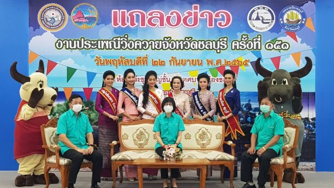 เมื่อเวลา 10.00 น.วันพฤหัสบดีที่ 22 กันยายน 2565 ณ ห้องประชุมใหญ่ ชั้น 4 เทศบาลเมืองชลบุรี นางสาวฐิติลักษณ์ คำพา รองผู้ว่าราชการจังหวัดชลบุรี พร้อมด้วย นายวิทยา คุณปลื้ม นายกองค์การบริหารส่วนจังหวัดชลบุรี นายสุติกรณ์ จำเริญพานิช นายกเทศมนตรีเมืองชลบุรี ร่วมแถลงข่าวงานประเพณีวิ่งควายจังหวัดชลบุรี ครั้งที่ 151 “หนึ่งเดียวในไทย หนึ่งเดียวในโลก” จัดโดยจังหวัดชลบุรี ร่วมกับ องค์การบริหารส่วนจังหวัดชลบุรี การท่องเที่ยวแห่งประเทศไทย และ เทศบาลเมืองชลบุรี ร่วมให้การสนับสนุนอนุรักษ์ประเพณีวัฒนธรรมอันดีงามของท้องถิ่น ในปีนี้จะมีกิจกรรมซึ่งจะมีพิธีเปิดงาน ในวันอาทิตย์ที่ 9 ตุลาคม 2565