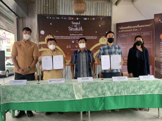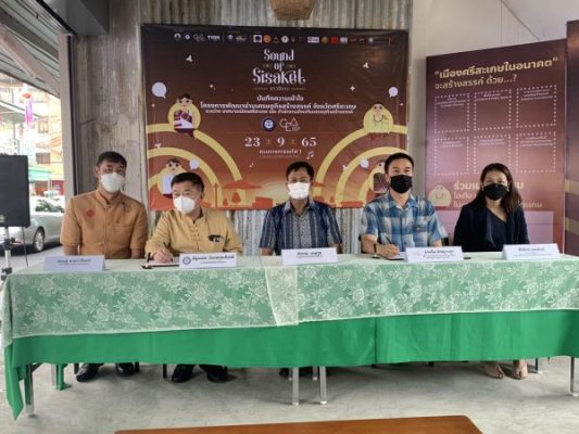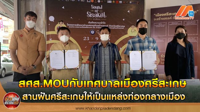 เมือวันที่ 23 กันยายน 2565 ที่ถนนราชการรถไฟ1 หลังสถานีรถไฟศรีสเกษ นายสำรวย เกษกุล รองผู้ว่าราชการจังหวัดศรีสะเกษ ได้เป็นประธานในพิธีลงนามความร่วมมือMOU และกระบวนการ Co-Creation Sound of Sisaket ระหว่าง นายฉัฐมงคล อังคสกุลเกียรติ นายกเทศมนตรีเมืองศรีสะเกษ และ ดร.ชาคริต พิชญางกูร ผอ.สำนักงานส่งเสริมเศรษฐกิจสร้างสรรค์ (องค์กรมหาชน) หน่วยงานภายใต้สำนักนายกรัฐมนตรี โดยมี ดร.กัลยาณี ธรรมจารีย์ นายกสมาคมส่งเสริมเครือข่ายการท่องเที่ยวศรีสะเกษ น.ส. สิริลักข์ เหมพันธุ์ กรรมการผู้จัดการ บริษัท อั๊คโซ่ โนเบลเพ้นท์ส ประเทศไทยจำกัด นายสฤษฏ์ นาควารินทร์ ประธานหอการค้าจังหวัดศรีสะเกษ นายมาโนช มหาสุวีระชัย รองนายกเทศมนตรีฯ นางสาวศรีเสงี่ยม ณูรักษา ปลัดเทศบาลฯนำหัวหน้าส่วนการบริหารจากเทศบาล ประธานYEC ประธานชุมชน และประชาชน เข้าร่วมกิจกรรมเป็นสักขีพยานเป็นจำนวนมาก