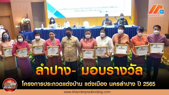 เมื่อเวลา 09.30 น.วันที่ 29 ก.ย. 2565 ผู้สื่อข่าวรายงานว่า ณ ห้องประชุมรักองค์การ อาคารประชาสัมพันธ์โรงไฟฟ้าแม่เมาะ กฟผ.แม่เมาะ อ.แม่เมาะ จ.ลำปาง นายชนาธิป เสมแย้ม ปลัดจังหวัดลำปาง มอบรางวัลตามโครงการประกวดแต่งบ้าน แต่งเมือง นครลำปาง ที่ขอความร่วมมือส่วนราชการและหน่วยงานได้ดูแลและตกแต่งสถานที่ทำงานให้สะอาดสวยงาม เพื่อเป็นแบบอย่างที่ดีแก่ประชาชน โดยจัดการประกวดแบ่งออกเป็น 4 ระดับ คือ 1. ระดับจังหวัดซึ่งจำแนกเป็นหน่วยงานที่ตั้งอยู่ในอาคารศาลากลางจังหวัดลำปาง และอยู่นอกอาคารศาลากลางจังหวัดลำปาง 2.ระดับอำเภอ 3.ระดับตำบล หรือ อปท.และ 4. ระดับหมู่บ้าน