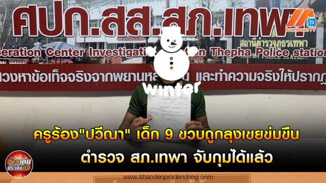 นางปวีณากล่าวว่า เด็กหญิง 9 ขวบ อยู่กับลุงเขย และพี่สาวเพียงลำพัง พ่อแม่แยกทางกัน และลุงเขยก็สั่งให้น้องมายนอนห้องเดียวกับลุง2คน เด็กจึงถูกข่มขืน มาเป็นเวลากว่า2ปีตั้งแต่ช่วงก่อนcovid ขอบคุณพตอ.ธรรมรัตน์ เพชรหนองชุม ผกก. สภ.เทพา จ.สงขลา ที่จับกุมคนร้าย และขอบคุณ นส.วิไลวรรณ สุวรรณรักษา พมจ.สงขลา และ นส.กมลพัฒน์ นนทรี หน.บ้านพักเด็ก จ.สงขลา ที่ได้เข้าช่วยเหลือเด็กได้อย่างรวดเร็ว โดยเด็กอยู่ในความดูแลของบ้านพักเด็ก พม.ขณะนี้ ทางมูลนิธิปวีณาฯจะติดตามการดูแลช่วยเหลือเด็กร่วมกับพม.ให้มีสภาพจิตใจที่ปกติ ได้เรียนหนังสือ ได้มีชีวิตที่ดีต่อไป