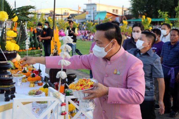 เมื่อเวลา 16.00 น วันที่ 10 ต.ค.ดร.ทรงศักดิ์ ทองศรี รัฐมนตรีช่วยว่าการกระทรวงมหาดไทย (มท.2) เป็นประธานในพิธีบวงสรวงพญานาคา และเปิดงาน”11 ปี เปิดประตูสู่นครนาคา ออกพรรษาบึงกาฬ” ปี 2565 ณ ถนนข้าวเม่าริมโขง ต.บึงกาฬ อ.เมืองบึงกาฬ จ.บึงกาฬ โดยมีนายนฤชา โฆษาศิวิไลซ์ รองผู้ว่าราชการจังหวัดบึงกาฬ นางแว่นฟ้า ทองศรี นายก อบจ.บึงกาฬ หัวหน้าส่วนราชการ ข้าราชการ เจ้าหน้าที่ ประชาชนชาวบึงกาฬจากทั้ง 8 อำเภอ และนักท่องเที่ยว ร่วมในงาน