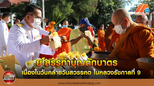 วันที่ 13 ตุลาคม 2565 เวลา 07.00 น. หอประชุมวิถีอีสาน ศาลากลางจังหวัดยโสธร นายสุวัฒน์ เข็มเพชร รองผู้ว่าราชการจังหวัดยโสธร รักษาราชการแทนผู้ว่าราชการจังหวัดยโสธร เป็นประธานในพิธีทำบุญตักบาตรถวายพระราชกุศล จำนวน 89 รูป เพื่อน้อมรำลึกในพระมหากรุณาธิคุณ เนื่องในวันคล้ายวันสวรรคต พระบาทสมเด็จพระบรมชนกาธิเบศร มหาภูมิพลอดุลยเดชมหาราช บรมนาถบพิตร 13 ตุลาคม 2565 โดยมี อัยการ หัวหน้าส่วนราชการ ตำรวจ ทหาร พ่อค้าและประชาชน ร่วมพิธี