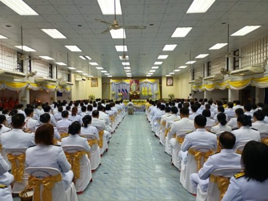จากนั้นเวลาประมาณ 08.00น.นายสมพงค์ ชมชัย นายอำเภอศรีสัชนาลัย เป็นประธาน ประกอบพิธีทำบุญตักบาตร และทอดผ้าไตรและจตุปัจจัยไทยธรรม ถวายปิ่นโตแด่พระภิกษุสงฆ์ เพื่อน้อมรำลึกในพระมหากรุณาธิคุณ เนื่องในวันสวรรคตพระบาทสมเด็จพระบรมชนกาธิเบศศร มหาภูมิพลอดุลยเดชมหาราช บรมนาถบพิตร 13 ตุลาคม ที่หอประชุมอำเภอศรีสัชนาลัย พระบาทสมเด็จพระปรมินทรมหาภูมิพลอดุลยเดช บรมนาถบพิตร เป็นพระมหากษัตริย์ไทย รัชกาลที่ 9 แห่งราชวงศ์จักรี เสด็จขึ้นครองสิริราชสมบัติ เมื่อวันที่ 9 มิถุนายน พ.ศ. 2489 เป็นพระมหากษัตริย์ไทยที่ทรงครองราชสมบัติยาวนานที่สุดในประเทศไทย พระองค์เสด็จพระราชสมภพเมื่อวันที่ 5 ธันวาคม พ.ศ. 2470 และเสด็จสวรรคต เมื่อวันที่ 13 ตุลาคม 2559 โดยตลอดระยะเวลา 70 ปี ของการครองราชย์ได้ทรงอุทิศพระองค์ ให้แก่ ประเทศชาติ และประชาชนชาวไทยมาโดยตลอด ทรงปฏิบัติพระราชกรณียกิจนานัปการในการบำบัดทุกข์บำรุงสุข และใช้เวลาส่วนพระองค์เสด็จเยี่ยมประชาชนในทุกภูมิภาคของประเทศ