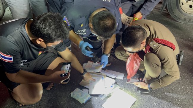 เบื้องต้นร.ต.อ.เนวิน สุนทรวนิค รอง สว.สอบสวนเจ้าของคดีได้ลงพื้นที่ตรวจสอบ ที่เกิดเหตุอย่างละเอียด พบภายในรถยนต์หรูยี่ห้อ BMW มีผู้เสียชีวิตอยู่ที่เบาะคนขับ ภายในรถยังมีเอกสารเกี่ยวกับที่ดิน การออกแบบโครงสร้างอาคาร จำนวนมากจึงเก็บไว้เป็น ส่วนร่างผู้เสียชีวิตมอบหมายให้เจ้าหน้าที่กู้ภัยฯเคลื่อนย้ายไปยังโรงพยาบาลบางละมุง เพื่อรอให้ญาติมาติดต่อรับศพไปประกอบพิธีตามประเพณีทางศาสนา ส่วนรถที่เกิดอุบัติเหตุขวางถนน ได้ประสานหน่วยงานที่เกี่ยวข้องเร่งเคลื่อนย้ายเพื่อให้จราจรกลับสู่สภาวะปกติต่อไป