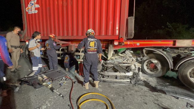 เมื่อเวลา 18.30 น.วันที่ 13 ตุลาคม 2565 ร.ต.อ.เนวิน สุนทรวนิค รอง สว.สอบสวน ห้วยใหญ่ รับแจ้งอุบัติเหตุรถยนต์เก๋งบีเอ็มดับเบิลยู ชนกับรถพ่วง 18 ล้อ มีผู้เสียชีวิต เหตุเกิดที่ยูเทรินกลับรถ ช่วงหลักกิโลเมตรที่ 23-24 บนนถนนหลวงแผ่นดินหมายเลข 331 ต.โป่ง อ.บางละมุง จ.ชลบุรี หลังรับแจ้งจึงพร้อมด้วยเจ้าหน้าที่กู้ภัยสว่างบริบูรณ์ธรรมสถานเมืองพัทยารีบไปตรวจสอบ