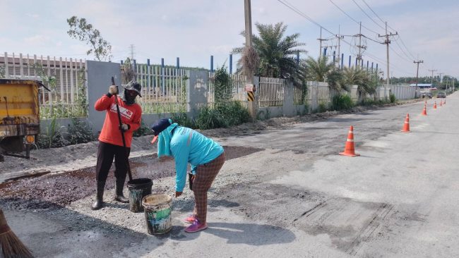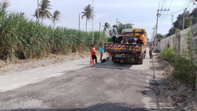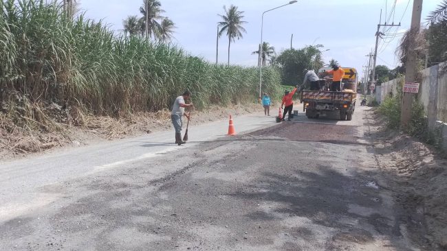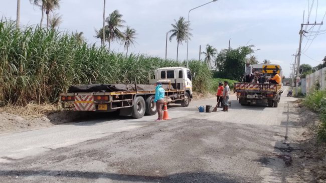 ซึ่งในวันนี้(14 ต.ค.2565) เวลา 14.30 น.ผู้สื่อข่าวได้ลงตรวจสอบถนนสาย ชบ.๕๐๖๘ แยกทางหลวงชนบทสาย ชบ.๓๐๘๓ –บ.มาบระหงษ์ หมู่5 ตำบลเขาคันทรง อำเภอศรีราชา พบว่าเจ้าหน้าที่ของหมวดบำรุงทางหลวงชนบทบางละมุง กำลังซ่อมพื้นผิวถนน โดยใช้หินเกล็ด โรยพื้นผิวถนนที่ปรับแล้ว และใช้ยางแอสฟัลท์ หรือ ยางมะตอย ลาดพื้นถนนเพื่อให้ประชาชนสามารถใช้ถนนเส้นดังกล่าวที่ชำรุด ได้ชั่วคราว ก่อนที่จะดำเนินการยกระดับ เป็นถนนคอนกรีตเสริมเหล็กพร้อมติดตั้งระบบระบายน้ำ ในเดือนพฤษจิกายนที่จะถึงนี้ตามงบประมาณที่อนุมัติมา ซึ่งการซ่อมแซมถนนจะเสร็จสิ้นในวันนี้ ประชาชนสามารถใช้เส้นทางได้ตามปกติ