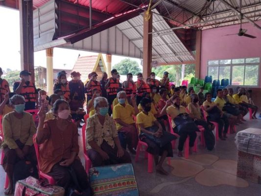 หลังจากนั้นคณะจะเดิทางไปยังท่าเรือชั่วคราว เพื่อลงเรือท้องแบนไปมอบเครื่องอุปโภคบริโภค และสุขากระดาษ ให้กับประชาชนที่บ้านเรือนถูกตัดขาดจากกระแสน้ำ บริเวณบ้านโนนทราย ตำบลดอนแรด อำเภอรัตนบุรี จังหวัดสุรินทร์