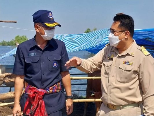 จากนั้น ผู้อำนวยการสำนักงานทหารพัฒนา หน่วยบัญชาการทหารพัฒนา และคณะได้เดินทางไปยังโรงพยาบาลส่งเสริมสุขภาพตำบลบ้านบึง ตำบลดอนแรด อำเภอรัตนบุรี จังหวัดสุรินทร์ เพื่อเยี่ยมและมอบสิ่งของจำเป็นให้แก่ผู้ป่วยติดเตียง และเดินทางต่อไปยังพื้นที่อพยพปศุสัตว์ ตำบลดอนแรด อำเภอรัตนบุรี จังหวัดสุรินทร์ เพื่อตรวจเยี่ยมการปฏิบัติงานของชุดปฏิบัติการสัตวแพทย์ฯ และหน่วยงานร่วมกรมปศุสัตว์