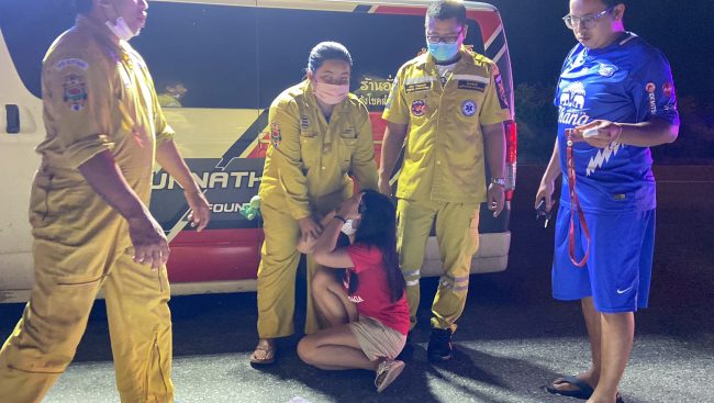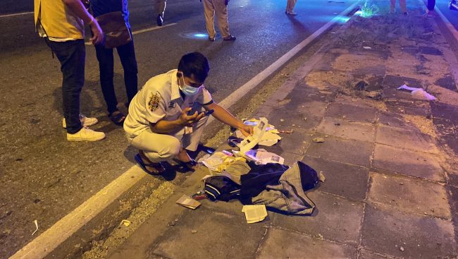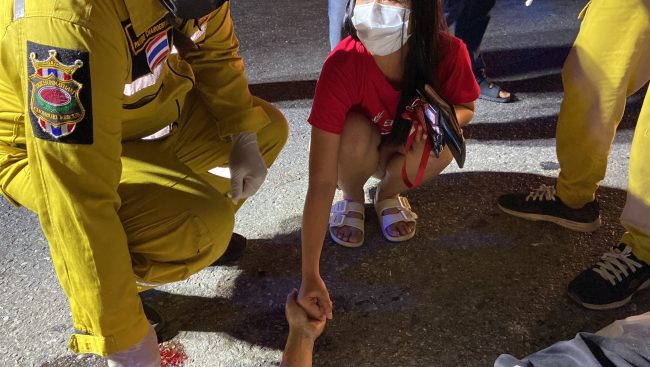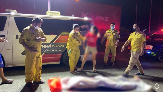 สอบถามกู้ภัยฯเผยว่า ได้รับแจ้งจากศูนย์วิทยุว่ามีรถชนเสาไฟฟ้าส่องทางจึงรีบมาตรวจสอบพบผู้ตายนอนคว่ำหน้า สภาพขาหัก ที่ศรีษะยุบมันสมองหลุดออกไปกองข้างเสาไฟฟ้ามีเลือดกระจาย จึงแจ้งให้ตำรวจมาตรวจสอบดังกล่าว