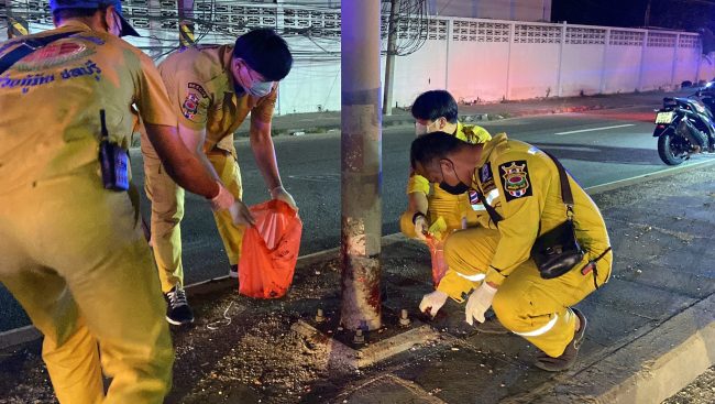 เบื้องต้นตำรวจจะได้ขอตรวจสอบดูภาพจากกล้องวงจรปิดใกล้ที่เกิดเหตุอีกครั้งว่าผู้ตายขี่รถ จยย.ล้มแล้วรถและร่างพุ่งชนเสาไฟฟ้าส่องเสียชีวิตเองหรือมีรถคันอื่นเฉี่ยวชนทำให้เสียหลักชนเสาไฟดับ เพื่อจะได้ดำเนินการตามกฎหมายต่อไป……ภาพ ข่าว นายณัฐพัชร์ ศรีสุวรรณ์ ชลบุรี