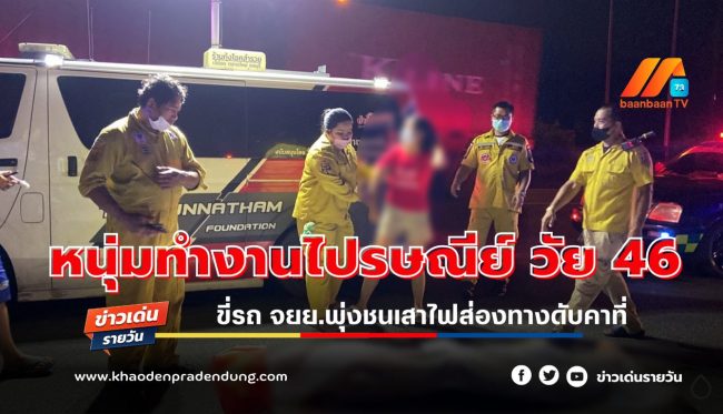 หนุ่มทำงานไปรษณีย์ วัย 46 ปี ขี่รถ จยย.พุ่งชนเสาไฟส่องทางดับคาที่