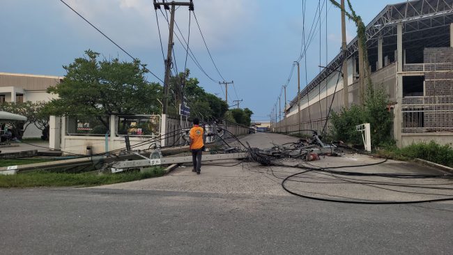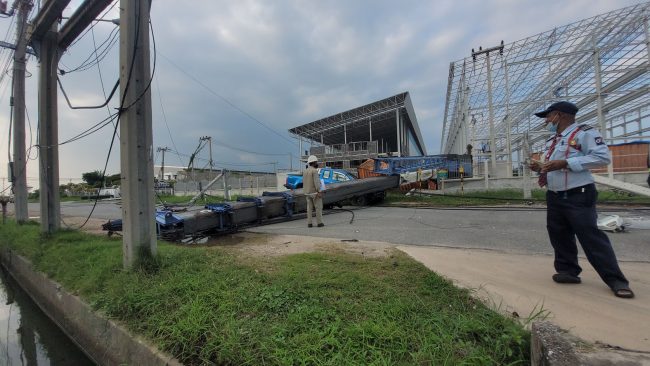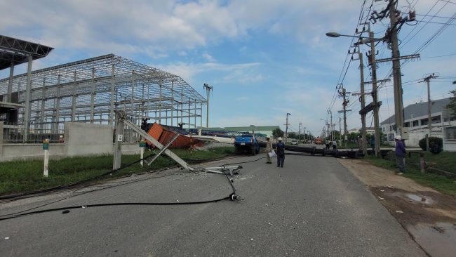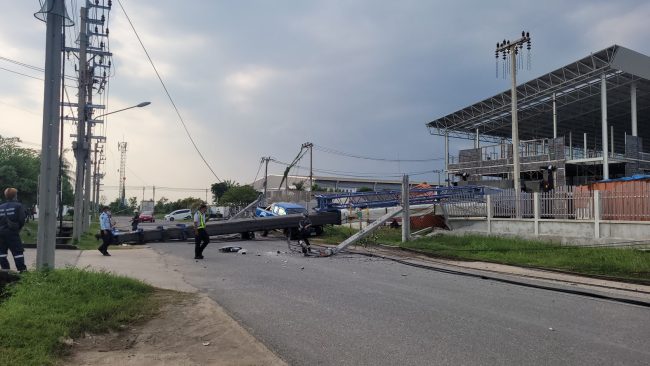 เมื่อเวลา 16.00 น วันที่ 24 ตุลาคม 2565 พ.ต.ท.สมัย เจริญราช สารวัตรสอบสวน สภ.บางปู สมุทรปราการ ได้รับแจ้งว่ามี รถเครน ขนาดใหญ่ ล้มเกี่ยวสายไฟฟ้าทำให้เสาไฟฟ้าล้ม จำนวนหลายต้น และ มีรถยนต์ได้รับความเสียหาย เหตุเกิดภายในนิคมอุตสาหกรรม บางปู ซอย 11 บี ตำบลแพรกษา อำเภอเมือง จังหวัดสมุทรปราการ หลังรับแจ้งจึงประสานเจ้าหน้าที่การไฟฟ้านครหลวง เขตสมุทรปราการ เข้าตรวจสอบที่เกิดเหตุ