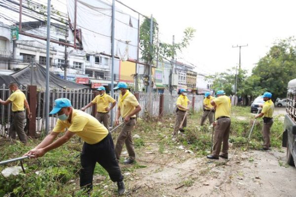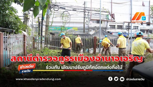 สถานีตำรวจภูธรเมืองอำนาจเจริญในตำรวจชุดจิตอาสาทำความดีด้วยหัวใจ ร่วมกัน พัฒนาปรับภูมิทัศน์ตกแต่งกิ่งไม้ณศูนย์ราชการหน้าที่ว่าการอำเภอเมืองอำนาจ
