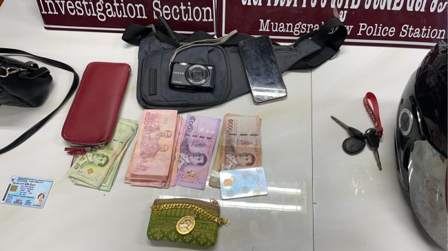 วันที่ 24 พ.ย.65 ผู้สื่อข่าวรายงาน พล.ต.ต. ณัฐพงษ์ สัตยานุรักษ์ ผบก.ภ.จว.สระแก้ว พร้อมด้วย พ.ต.อ.เอกอนันต์ หูแก้ว ผกก.สภ. เมืองสระแก้ว, พ.ต.อ.จตุรภัทร สิงหัษฐิต ผกก.สส.ภ. จว. สระแก้ว ชุดสืบสวน สภ.เมืองสระแก้ว และชุดสืบ กก.สส.ภ.จว. สระแก้ว ร่วมกันจับกุม นายอนุภาพ คูเดนเบิร์ก หรือเจมส์ อายุ 24 ปี อยู่บ้านเลขที่ 214/45 ถ.เทศบาล 6 ต.สระแก้ว อ.เมืองสระแก้ว จ.สระแก้ว พร้อมของกลาง กระเป๋าสะพายข้าง สีดำ 1 ใบ กระเป๋าสตางค์สีแดง 1 ใบ เงินสดรวม จำนวน 13,400 บาท แบ่งเป็น ธนบัตรฉบับละ 1,000 บาท จำนวน 11 ฉบับ ธนบัตรฉบับ ละ 500 บาท จำนวน 1 ฉบับ ธนบัตรฉบับละ 100 จำนวน 16 ฉบับ และธนบัตรฉบับละ 20 บาท จำนวน 15 ฉบับ กระเป๋ามีซิปรูดปิดเปิดสีเขียว 1 ใบ พระเลี่ยมทอง 1 องค์ สร้อยข้อมือทองคำ น้ำหนัก 1 บาท จำนวน 1 เส้น และของกลางรถจักรยานยนต์ ยี่ห้อ ซูซูกิ สี ขาว รุ่น SHOOTER ติดแผ่นป้ายทะเบียนหมายเลข 1กค 423 สระแก้ว 1 คัน ที่ผู้ต้องหาใช้ก่อเหตุ