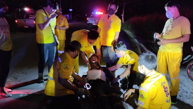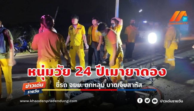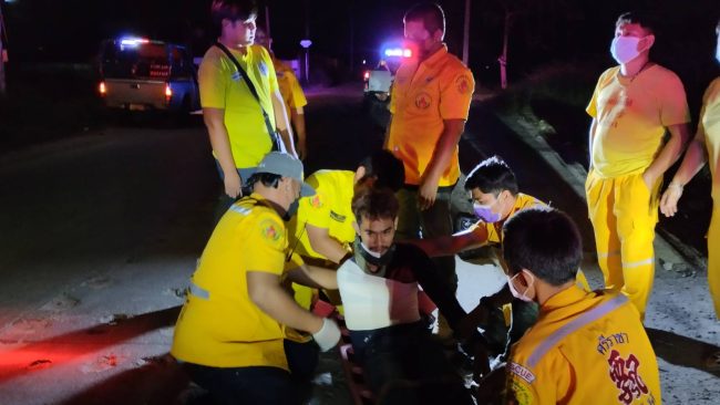 หนุ่มวัย 24 ปีเมายาดองขี่รถจยย.ตกหลุมที่ผู้รับเหมาวางท่อประปาเจาะไว้และไม่มีแสงไฟส่องสว่างให้เห็นบาดเจ็บสาหัส