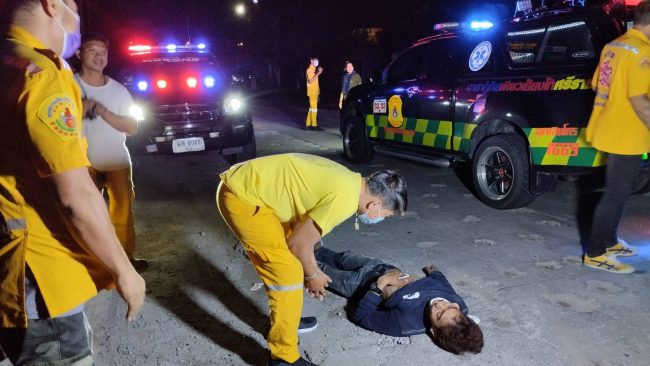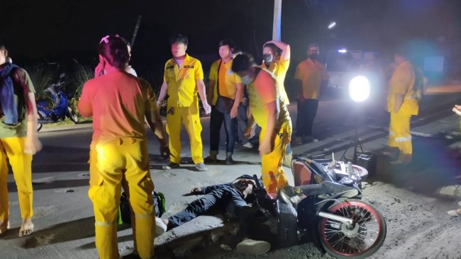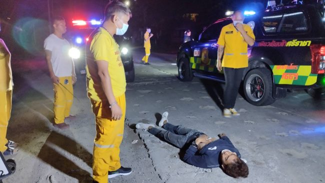 เมื่อเวลา00.10น.(25พ.ย.2565) อาสากู้ภัยเพียวเยี้ยงไท้ศรีราชา ได้รับแจ้งมีรถจยย.ตกหลุม รถพลิกคว่ำบาดเจ็บสาหัส หมดสติปลุกไม่ตื่นที่ถนนสายหนองปรือ-ห้วยเฝ้า ช่วงลานตู้เอเวอร์กรีน หมู่ 1 ตำบลหนองขาม อำเภอศรีราชา หลังรับแจ้งจึงนำกำลังอาสาจำนวน 10 นายออกไปตรวจสอบยังที่เกิดเหตุ พบนายวีระวัฒน์ คำจันทา อายุ24ปี นอนหมดสติร่างนอนหงายอยู่บนถนนสายหนองปรือ-ห้วยเฝ้า โดยใกล้กันพบรถจยย.ยี่ห้อฮอนด้าเวฟ 125Iสีดำ-แดง หมายเลขทะเบียน 3กภ-7852 ชลบุรี ล้มอยู่ข้างๆ จึงพยายามปลุกผู้บาดเจ็บจนรู้สึกตัว ตามลำตัวมีบาดแผล และที่หัวไหล่และต้นคอมีบาดแผล