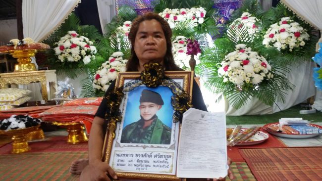 ซึ่งตนเองนั้นได้ร้องขอความเป็นธรรมใหกับลูกชายพลทหารขจรศักดิ์ ที่ถูกพลทหารทั้ง 11 คน ที่เป็นนักโทษด้วยกันลุมทำร้ายจนเสียชีวิต ให้ทางค่ายทหารดำเนินคดีให้ถึงที่สุด พร้อมกับตนเองก็หวั่นใจ กลัวลูกชายจะตายฟรี กลัวไม่ได้รับความเป็นธรรมค่าเยียวยา เพราะเห็นเป็นข่าวประจำหลังเผาศพแล้ว โดยที่ไม่ได้การช่วยเหลือดังกล่าว