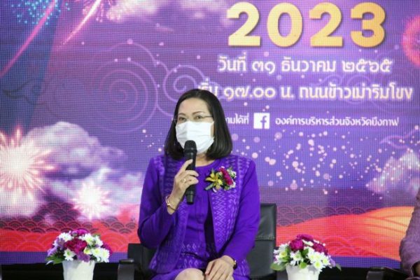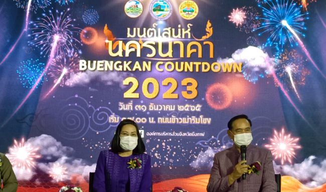 ค่ำวันนี้ ที่ถนนข้าวเม่าริมโขง อ.เมืองบึงกาฬ จ.บึงกาฬ ของเย็นวันที่ นางแว่นฟ้า ทองศรี นายกองค์การบริหารส่วนจังหวัดบึงกาฬ แถลงข่าวการจัดกิจกรรมส่งเสริมการท่องเที่ยว ด้านประเพณี ศิลปะ วัฒนธรรม ภายใต้ชื่องาน “มนต์เสน่ห์นครนาคา BUENGKAN COUNTDOWN 2023” อันเป็นงานส่งท้ายปีเก่าต้อนรับปีใหม่ 2566 ของจังหวัดบึงกาฬในระหว่างวันที่ 31 ธันวาคม 2565 – 1 มกราคม 2566 ณ ถนนข้าวเม่าริมโขง โดยมีหัวหน้าส่วนราชการ สื่อมวลชนจากทุกแขนง ประชาชนและเจ้าหน้าที่ที่เกี่ยวข้องร่วมงาน