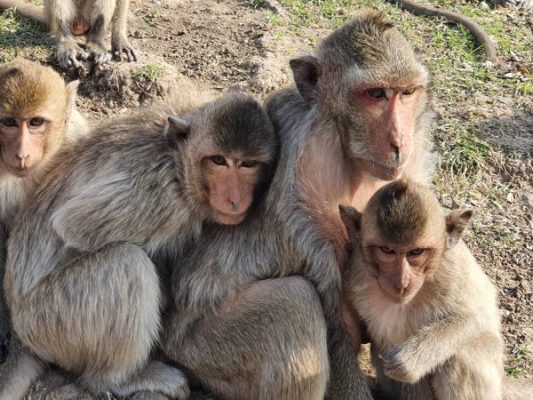 ลพบุรีอากาศหนาวเย็นตั้งแต่รุ่งสาง ฝูงลิงลพบุรีนับพันตัว ทั้งฝั่งพระปรางค์สามยอด กับฝั่งศาลพระกาฬ และลิงตึก หลบลมหนาวไม่ออกมากินอาหารเช่นทุกวัน พอถึงตอนสายพ่อแม่ก็พาลูกน้อย ออกมานั่งกอดกัน รับความไออุ่นจากแสงแดด
