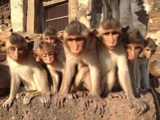 ไม่เพียงแต่คนเท่านั้น ที่ต้องการความอบอุ่นในช่วงอากาศเปลี่ยนแปลงเช่นนี้ ลิงลพบุรี ที่อาศัยอยู่ตามซอกตึก ศาลพระกาฬ และที่ปรางค์สามยอด ในช่วงเช้าปกติทุกวัน จะมีลิงออกมาหาอาหาร เดินเล่น แทะหญ้าแพรกหน้าปรางค์สามยอด รอรับอาหารจากเจ้าหน้าที่ และนักท่องเที่ยว แต่วันนี้อากาศหนาวเย็นมาก มองหาลิงแทบจะไม่มี จนเมื่อเวลา 09.00 น. เริ่มมีแสงแดดออก บรรดาเหล่าลิงน้อยใหญ่ นับพันตัวต่างทยอยกันออกมากินอาหาร นอนอาบแดด กอดกันเป็นกลุ่มก้อนเต็มลานพื้นที่พระปรางค์สามยอด และริมถนน เพื่อสร้างความอบอุ่นให้ร่างกาย โดยเฉพาะลิงแรกเกิดจะมีพ่อแม่กอดไว้ในอ้อมอก เพื่อให้คลายความหนาวที่หนาวเหน็บมาตลอดทั้งคืน