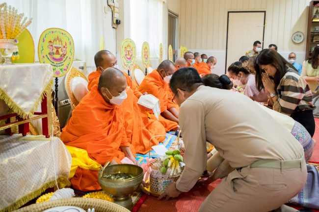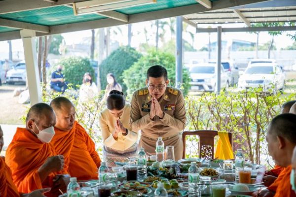 จากนั้นผู้ว่าราชการจังหวัดสุโขทัย รองนายกเหล่ากาชาดจังหวัดสุโขทัย หัวหน้าส่วนราชการ ร่วมถวายจตุปัจจัยไทยธรรม และถวายภัตตาหารเช้าแด่พระสงฆ์ ในการนี้หัวหน้าส่วนราชการ องค์กรปกครองส่วนท้องถิ่น และภาคเอกชน ได้ร่วมแสดงความยินดี เนื่องในโอกาสเข้ารับตำแหน่งผู้ว่าราชการจังหวัดสุโขทัย