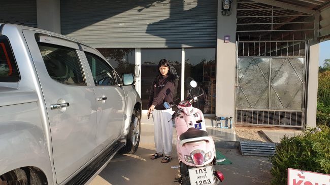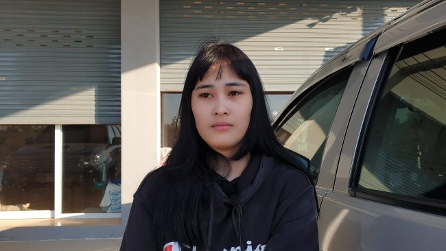 น.ส.พรภิมณฑ์ แคใหญ่ อายุ20ปี นักศึกษาฯปี 2เจ้าของรถ จยย. เล่าว่า ก่อนเกิดเหตุประมาณ 21:00 น. ตนได้จอดรถไว้หน้าหอ จากนั้นปิดบ้านขึ้นไปนอนพัก พอตื่นมาเรียนตอน 9:00 น. ของอีกวัน พบว่ารถของตนที่จอดไว้หายไปแล้ว จึงโทรแจ้งเจ้าหน้าที่ให้มาตรวจสอบ ตนก็ไปไล่ดูกล้องวงจรปิด ซึ่งตอนจอดตนไม่ได้ล็อคคอรถ ซื้อมาในราคา 160,000 บาท และยังส่งรถไม่หมดเหลืออีกประมาณ5เดือนถึงจะหมด ส่วนหนึ่งก็เป็นความผิดของตนที่จอดรถแล้วไม่ได้ล็อคคอรถ อยากให้เจ้าหน้าที่เข้ามาตรวจตาให้มีความปลอดภัยมากกว่านี้ หลังเกิดเหตุผู้นำชุมชนและชาวบ้านในพื้นที่ทราบเรื่องก็มาช่วยกันตามหา ตนกับเพื่อนๆไปหากล้องวงจรปิดมาเองทั้งหมด พบว่าคนร้ายเป็นชายวัยรุ่น 2 ราย ขับขี่รถจักรยานยนต์มาวนเวียนดูลาดลาว ก่อนหนึ่งในคนร้ายเดินลงมา ที่บริเวณหอพักก้มลงมองลอดประตูของบ้านเพื่อนที่อยู่ติดกันที่นั่งเล่นอยู่ในบ้าน จากนั้นหนึ่งในคนร้ายก็เดินเข้ามาก่อเหตุจูงรถของตนที่จอดไว้ ออกไปบนถนน