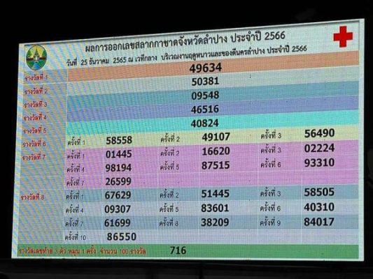 ลำปาง- ผลการหมุนหมายเลขออกรางวัลสลากกาชาด ประจำปี 2566