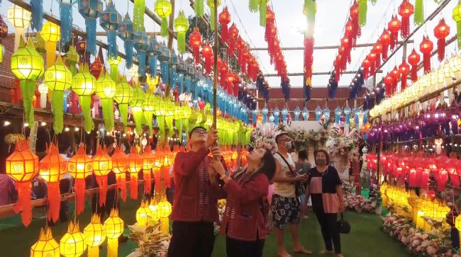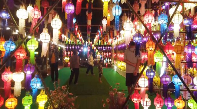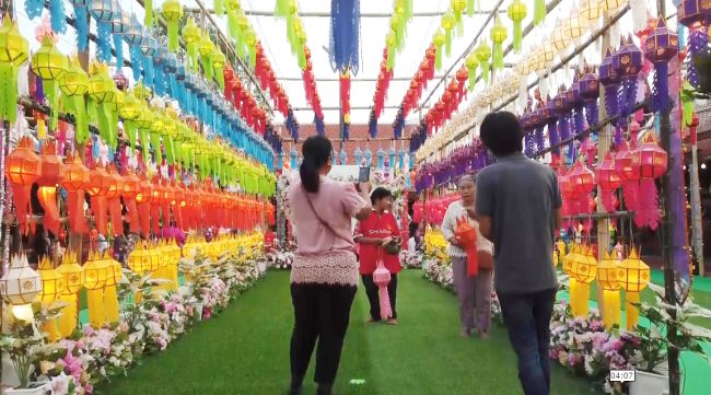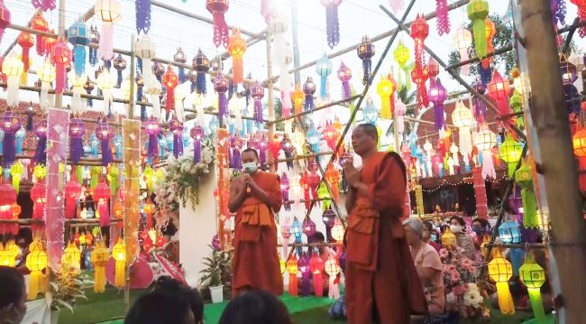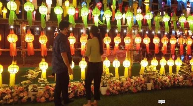 สุพรรณบุรีสาธุชนร่วมบุญแขวนโคมล้านนาบูชาพระบรมสารีริกธาตุสวยงามตระการตา1เดียวในสุพรรณ