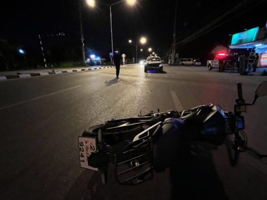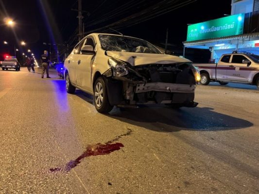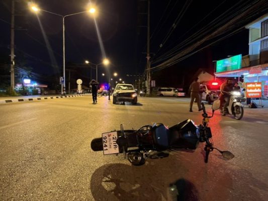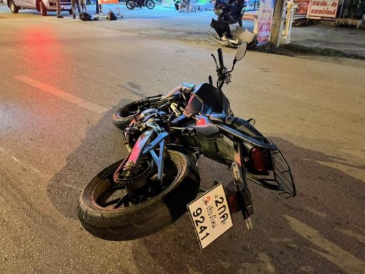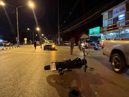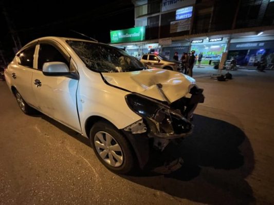 เกิดอุบัติเหตุ ชายไทยขับรถยนต์เก๋ง ชนรถจักรยานยนต์ชาวต่างชาติกับแฟนสาว รถกระเด็นไปไกลกว่า 8 เมตร ฝ่ายหญิงแฟนชาวต่างชาติหมดสติอยู่กลางถนน อาการสาหัส ส่วนหนุ่มชาวต่างชาติ ก็อาการสาหัสเช่นกัน