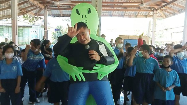 ผอ.รร.วัดดอนสัก แต่งชุด”เอเลี่ยน”จัดกิจกรรม”วันเด็กแห่งชาติ ประจำปี 2566″สร้างสีสัน ให้แก่เด็กนักเรียนและผู้ร่วมกิจกรรม