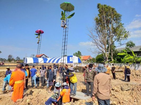 ศรีสะเกษ !! นายอำเภอโพธิ์ศรีสุวรรณประกอบพิธียกเสาเอก-เสาโท สร้างอาคารกองร้อย อส.อ.โพธิ์ศรีสุวรรณ