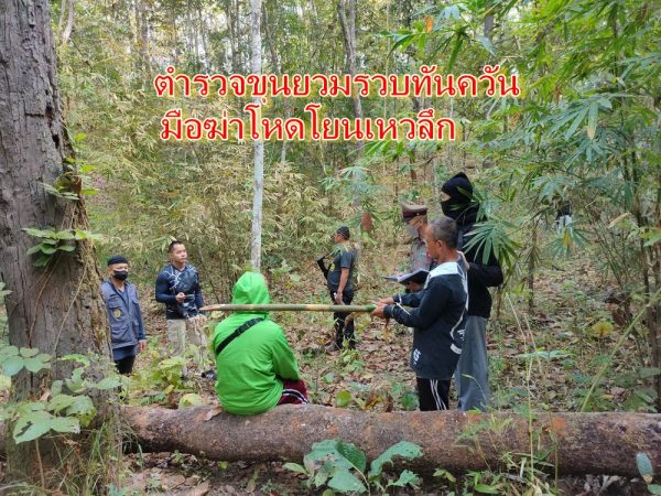 ในขณะที่กำลังรอแพทย์และเจ้าหน้าที่กองพิสูจน์หลักอยู่ ผู้สื่อข่าวได้สอบถามว่าทำไมถึงฆ่าเขาแกก็พูดว่าใจไม่อยากจะฆ่าเขาเนื่องจากเคยทำงานด้วยกันแต่มีหญิงคนหนึ่งเป็นคนให้ลวงมาฆ่าทิ้งโดยใช้กลลวงว่าไปหาลูกอ๊อดในลำห้วยส่วนหญิงคนดังกล่าวคอยอยู่บนสันเขาใกล้ทางเดินเข้ามาเมื่อมาถึงขอนไม้ที่ล้มอยู่ทั้งสองก็นั่งคุยกันตนได้เดินไปตัดไม้ไผ่ขนาดพอมือมานั่งเหลาและแหลมปลายทำทีว่าจะไปเขี่ยหาลูกอ๊อดพอนายเพชรเผลอตนจึงใช้ไม้ไผ่ที่ตัดมาตีเข้าหัวตรงทัดดอกไม้จนผู้ตายล้มแน่นิ่งและตีซ้ำอีกหนึ่งครั้งแล้วลากศพไปโยนลงลำห้วยห่างจากที่ทำแผนแค่ 3 เมตร