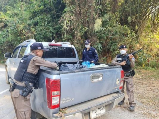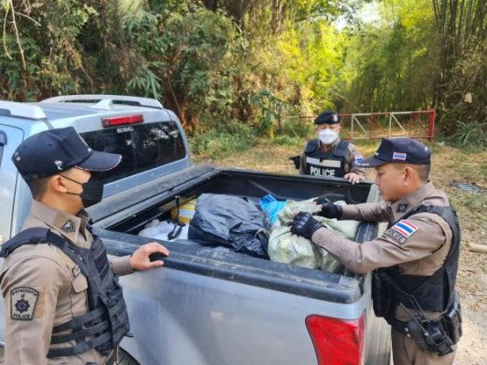 เวลาประมาณ 13.00 น.วันที่ 5 ก.พ. 66 เจ้าหน้าที่ตำรวจชุดสายตรวจรถยนต์ สภ.แม่ฟ้าหลวง นำโดย ร.ต.อ.นิติธร กรสวรรค์ รอง สวป.สภ.แม่ฟ้าหลวง ได้ออกตรวจพื้นที่รับผิดชอบเส้นทางตามแนวชายแดนบ้านจะลอ ม.10 ถึงบ้านป่าซางนางเงิน ม.12 ต.แม่ฟ้าหลวง อ.แม่ฟ้าหลวง จ.เชียงราย และได้ตั้งจุดตรวจบริเวณ บริวณสามแยกบ้านป่ายางอาข่า ม.16 พบรถยนต์กระบะยี่ห้ออีซูซุ สีฟ้า 4 ประตู ทะเบียน กย 1839 เชียงราย ขับมาจากเส้นทางบ้านห้วยปู ม.11 ต.แม่ฟ้าหลวง อ.แม่ฟ้าหลวง จ.เชียงราย มุ่งหน้าเข้ามายังบริเวณจุดตรวจ/จุดสกัด เมื่อเห็นเจ้าหน้าที่ตำรวจชุดตรวจยึด รถยนต์คันดังกล่าวจึงได้ขับถอยหลังอย่างรวดเร็ว เจ้าหน้าที่จึงขับรถยนต์ไล่ติดตาม