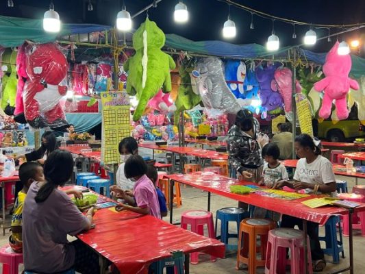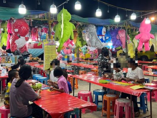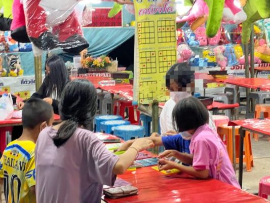 ผู้สื่อข่าวรายงานว่า เมื่อเวลา 20.30 น. วันที่ 8 ก.พ. 2566 ได้มีประชาชนมาร้องเรียนว่า ที่บริเวณสนามหน้าที่ว่าการ อ.ขุขันธ์ จ.ศรีสะเกษ ซึ่งเป็นสถานที่จัดให้มีการแสดงมหรสพสมโภชศาลหลักเมืองขุขันธ์ ระหว่างวันที่ 7 – 9 ก.พ.66 ได้มีพ่อค้าแม่ค้าพากันแอบมาเปิดร้านเล่นพนันปาเป้า ปาโป่ง ยิงเป้า ปาลูกดอก และเปิดร้านพนันบิงโก รวมจำนวน 5 ร้าน โดยได้ปล่อยให้เด็กและเยาวชนเข้าไปเล่นพนันกันอย่างโจ่งครึ่มไม่เกรงกลัวกฎหมาย ขอให้ผู้สื่อข่าวเข้าไปตรวจสอบด้วย ดังนั้น ผู้สื่อข่าวจึงได้เดินทางเข้าไปตรวจสอบตามที่มีการร้องเรียน เมื่อไปถึงพบว่า บริเวณดังกล่าวมีการแสดงละเล่นหลายอย่าง โดยที่ตั้งของร้านปาเป้า ปาโป่ง บิงโก อยู่บริเวณด้านหน้าที่ว่าการ อ.ขุขันธ์ โดยอยู่ห่างจากที่ว่าการ อ.ขุขันธ์ ประมาณ 150 เมตร และอยู่ห่างจาก สภ.ขุขันธ์ ประมาณ 150 เมตร มีการนำเอาตุ๊กตาตัวใหญ่จำนวนมากสีสันสวยงามมาแขวนอยู่หน้าร้านเพื่อเป็นการล่อตาล่อใจให้เด็กและเยาวชนรวมทั้งวัยรุ่นหนุ่มสาวพากันเข้าไปเล่นพนันปาเป้า ปาโป่ง ยิงตุ๊กตา ยิงเป้า เล่นพนันบิงโก เพื่อหวังที่จะเอาตุ๊กตาตัวใหญ่กลับไปบ้านด้วย มีบรรดาเจ้าของร้านร้องตะโกนเชิญชวนให้เด็ก ๆ และเยาวชนเข้าไปเล่นพนัน กำหนดราคาว่า ปาไม่ปัก 1 ดอก 20 บาท ปาไม่ติดรับตุ๊กตา 3 ดอก 50 บาท โยนตก 1 กระป๋องรับ 1 ตัว 20 บาท 1 ลูก 20 บาท 4 ดอก 20 บาทลูกดอกไม่เด้ง และวิธีการเล่นพนันบิงโก ติดหน้าร้าน มีเด็กและเยาวชนพากันเข้าเล่นพนันกันเป็นจำนวนมาก โดยไม่พบว่า บรรดาเจ้าของร้านได้มีการนำเอาใบอนุญาตให้เปิดเล่นพนันบริเวณนี้ได้มาติดไว้ในที่มองเห็นได้แต่อย่างใด