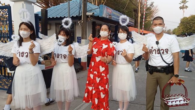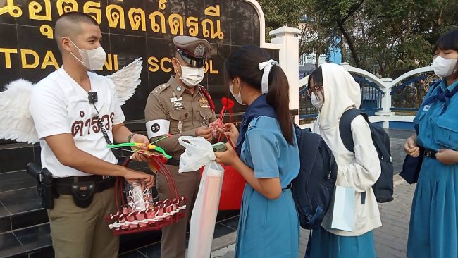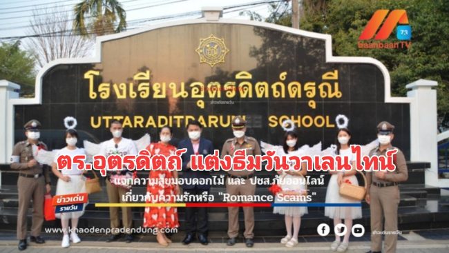 ตร.อุตรดิตถ์ แต่งธีมวันวาเลนไทน์ 14กุมภาพันธ์ แจกความสุขมอบดอกไม้ และ ปชส.ภัยออนไลน์เกี่ยวกับความรักหรือ “Romance Scams”