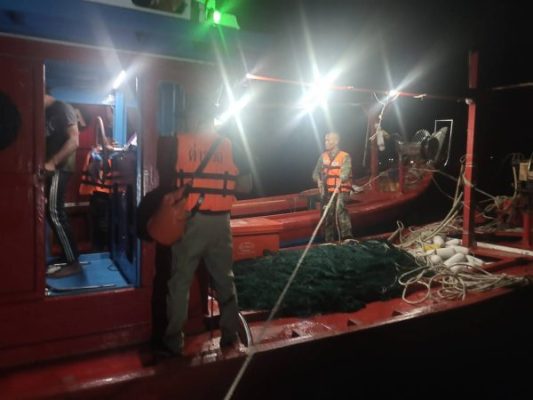 เมื่อวันที่ 17 ก.พ.2566 เวลา 17.10 น. นาวาโท น้ำน่าน บุนนาค ผู้บังคับหน่วยปฏิบัติการหน่วยบัญชาการต่อสู้อากาศยานและรักษาฝั่งที่ 491 กองทัพเรือ ได้รับการประสานจาก นาวาเอก แสนย์ไท บัวเนียม รองผู้อำนวยการศูนย์อำนวยการรักษาผลประโยชน์ของชาติทางทะเลจังหวัดสตูล ศูนย์อำนวยการรักษาผลประโยชน์ของชาติทางทะเลภาค 3 ว่าได้รับแจ้งจากเครือข่ายประมง พบเรือประมงสัญชาติมาเลเซีย จำนวน 2 ลำ รุกล้ำเข้ามาทำการประมงในเขตน่านน้ำไทย บริเวณด้านทิศใต้ของเกาะตะง่าห์ จว.สตูล พิกัด แลต 6 องศา 32.20 ลิปดาเหนือ ลอง 99 องศา 24.80 ลิปดาตะวันออก หน่วยปฏิบัติการหน่วยบัญชาการต่อสู้อากาศยานและรักษาฝั่งที่ 491 กองทัพเรือ จึงได้บูรณาการกำลังกับ เจ้าหน้าที่ตำรวจ สถานีตำรวจภูธร เกาะหลีเป๊ะ และ หน่วยป้องกันและปราบปรามประมงทะเลเกาะหลีเป๊ะ (สตูล) จัดกำลังพลพร้อมเรือยางท้องแข็งและเรือตรวจการประมงทะเล เข้าตรวจสอบในพื้นที่ดังกล่าว เวลา 20.30 น. เดินทางถึงบริเวณที่ได้รับแจ้ง ตรวจพบเรือประมงมาเลเซีย จำนวน 2 ลำ พร้อมลูกเรือ รวม 6 คน (ชาวไทย 2 คน และชาวมาเลเซีย 4 คน) กำลังทำการประมง อวนลอย จึงแสดงตัวเป็นเจ้าหน้าที่เข้าทำการจับกุม เรือลำที่ 1 ชื่อ SABI BIN CHEMAN หมายเลข KHF 1455 ขนาด 11.63 ตันกรอส และลำที่ 2 ชื่อเรือ WAN MUHAMAD หมายเลขประจำเรือ KHF 1714 ขนาดตัวเรือยาว ขนาด 6.70 ตันกรอส เครื่องยนต์ HINO รุ่น EH100 และได้ทำการควบคุมผู้ต้องหาพร้อมเรือกลับเข้าฝั่งที่เกาะหลีเป๊ะ